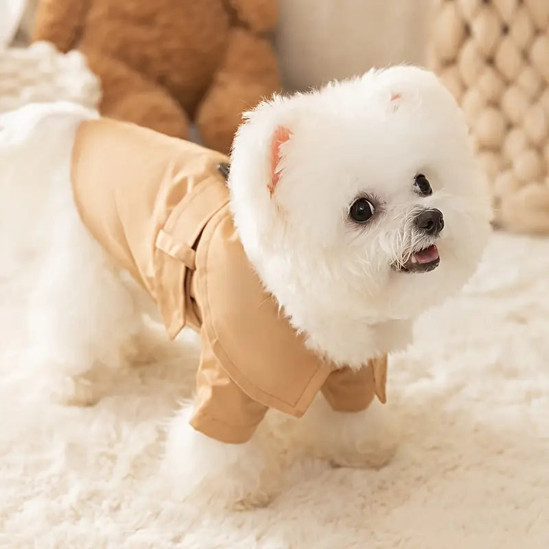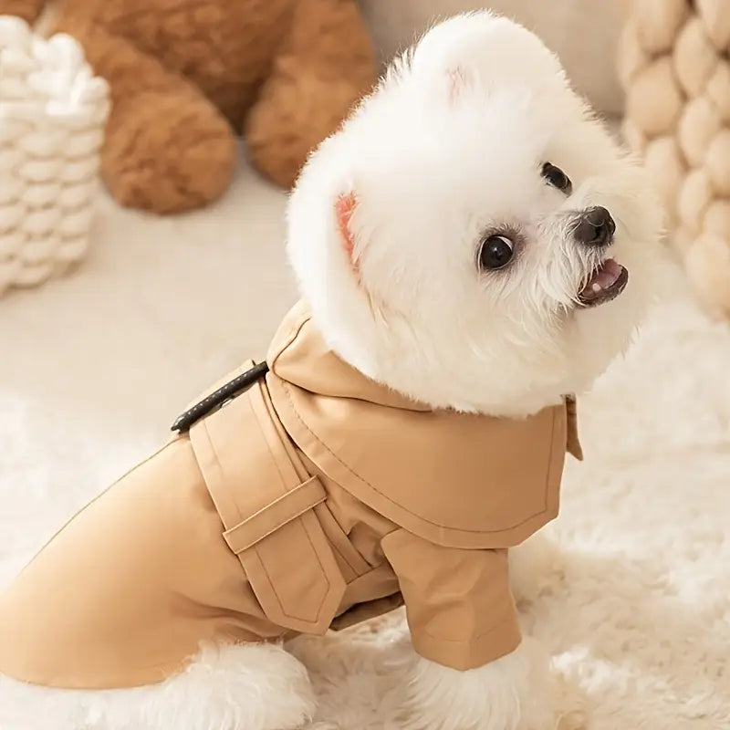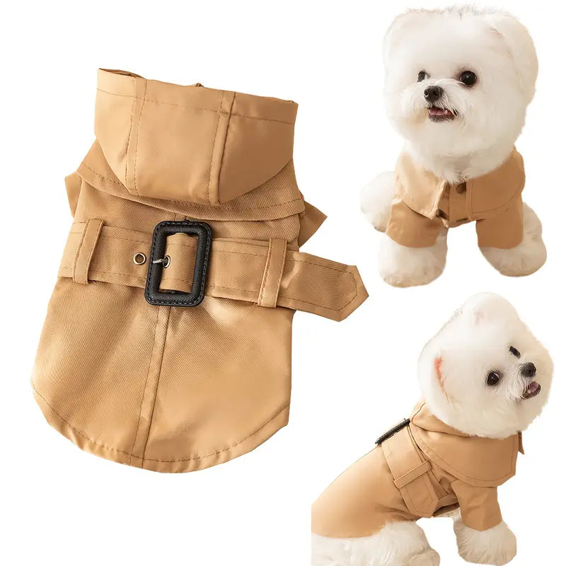 Khaki English Style Hooded Trench Coat | Small And Medium-Sized Pet Clothes, Dog