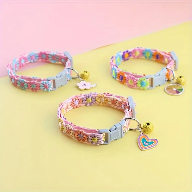 [Stylish Pet Collar] Stylish Floral Lace Pet Collar with Bell & Adjustable Buckle | 1pc, Durable Polyester Material, Decorative Pet Accessory for Small Cats and Dogs - Pink, Yellow & Multicolor Designs